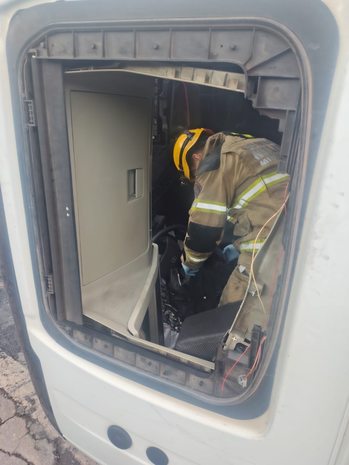 O motorista, um senhor de 61 anos, natural de BH, ficou preso às ferragens. Quando os bombeiros chegaram, ele estava dentro da cabine, consciente e orientado, mas se queixando de dores. Os bombeiros constataram que ele apresentava múltiplas escoriações pelo corpo, possíveis fraturas e membros presos à estrutura da carreta.