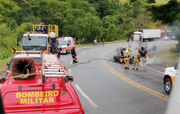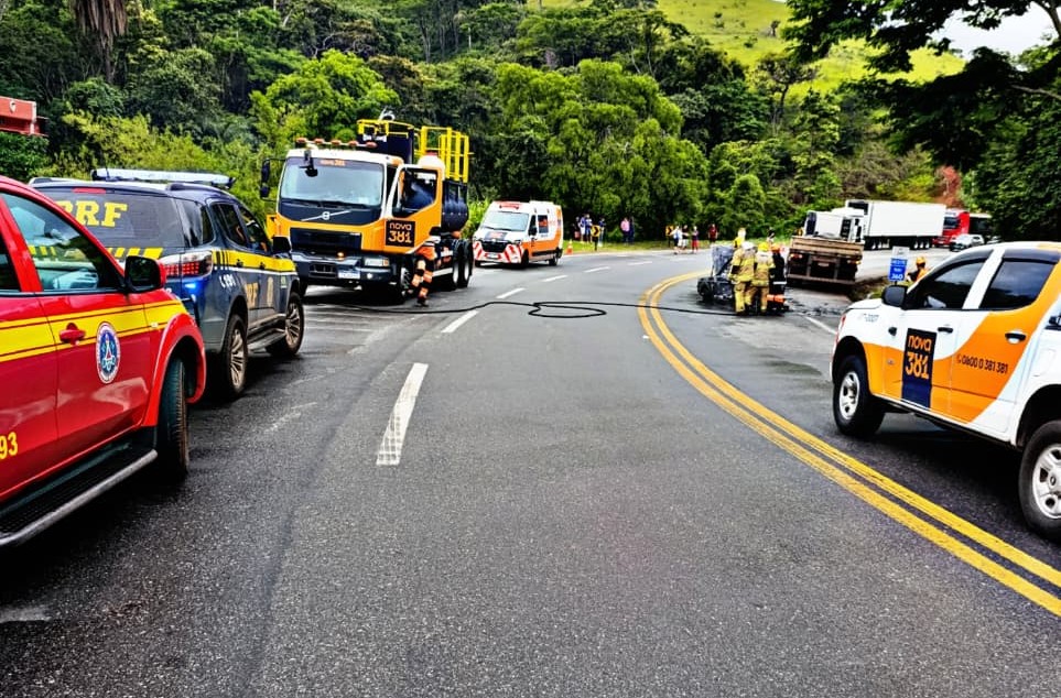 O trânsito ficou interditado, em operação pare e siga, para atuação das equipes. A concessionária Nova 381 também atua com guincho, resgate e inspeção no local.