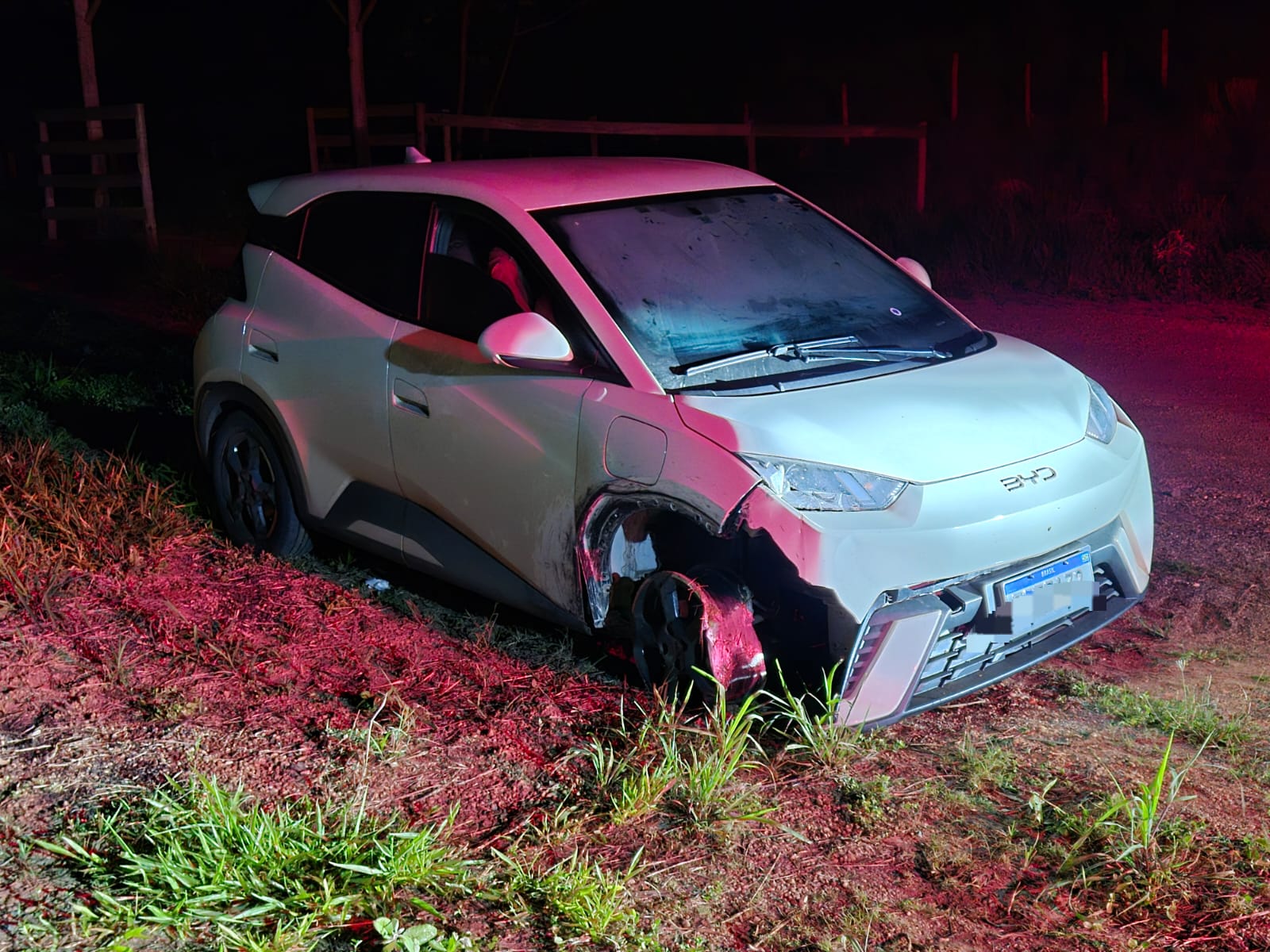 Equipes da PRF e da Polícia Militar localizaram o veículo acidentado no km 146 da BR-262, na divisa entre Rio Casca e São Domingos do Prata. No local, ninguém foi encontrado dentro do carro. A roda dianteira do BYD tinha danos, o que impossibilitou a continuidade da fuga dos autores.