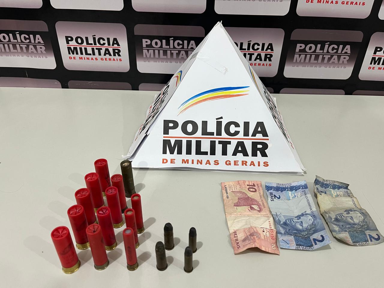Após ser revistado, os policiais encontraram com ele uma sacola contendo munições de arma de fogo de diversos calibres.
