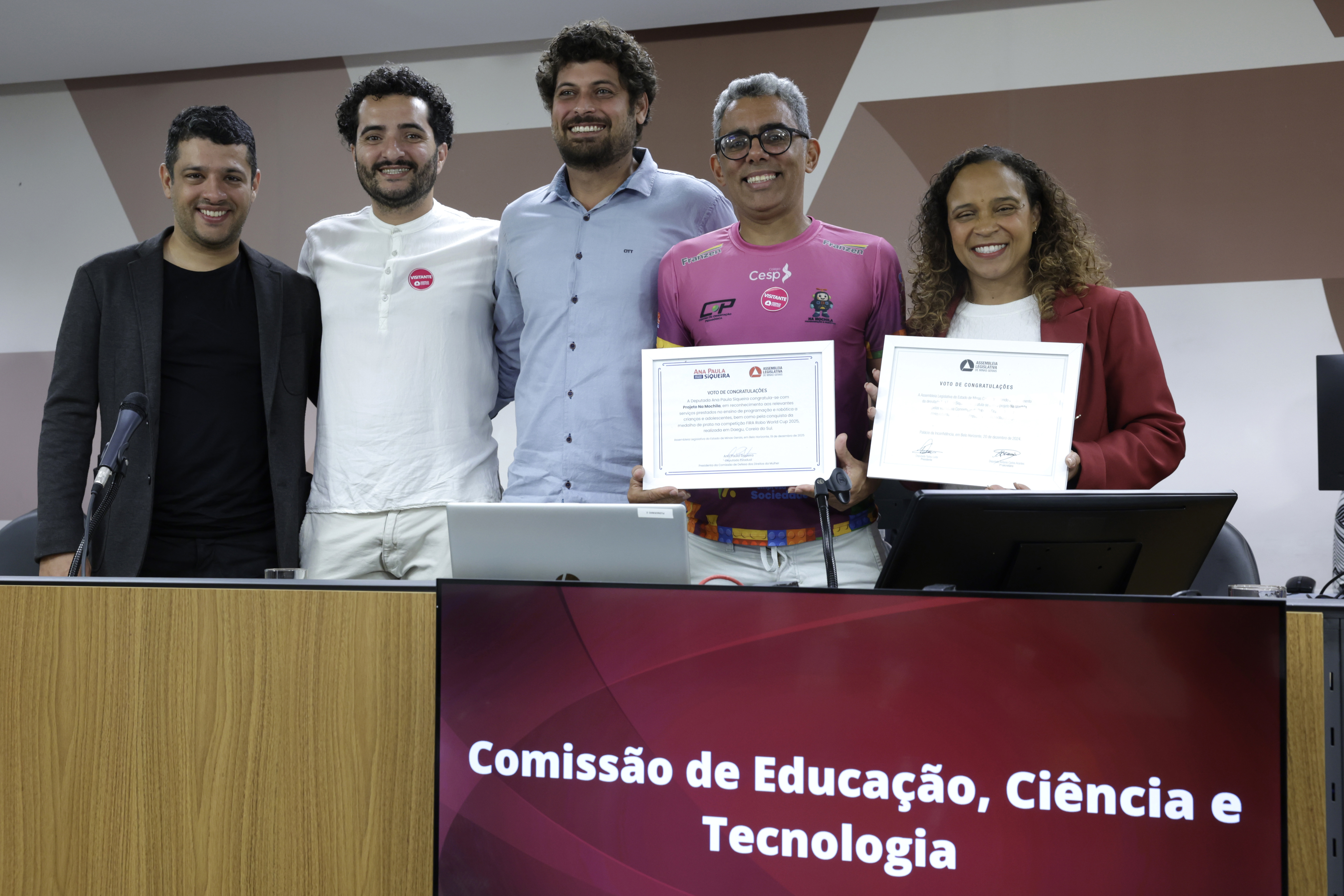 A Comissão de Educação, Ciência e Tecnologia entregou votos de congratulações aos professores que levam o ensino de programação e robótica a crianças e adolescentes. A homenagem foi uma iniciativa da deputada estadual Ana Paula Siqueira (REDE).