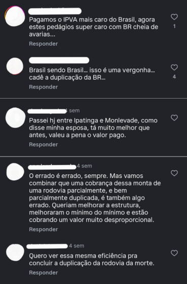 Por outro lado, prefeitos, vice-prefeitos, vereadores e lideranças de municípios cortados pela rodovia apresentaram suas reclamações. Muitos deles ressaltaram que a cobrança de pedágio está sendo feita por uma melhoria ainda não realizada.