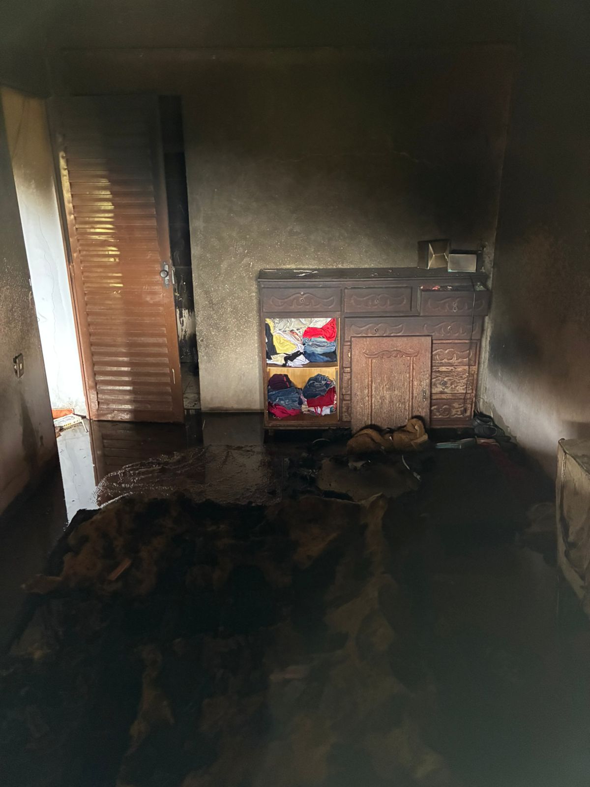 Os bombeiros realizaram o combate ao fogo, concentrado principalmente na cama, seguido de ventilação e rescaldo. Apesar dos danos materiais, a estrutura da casa não apresentou rachaduras ou trincas.