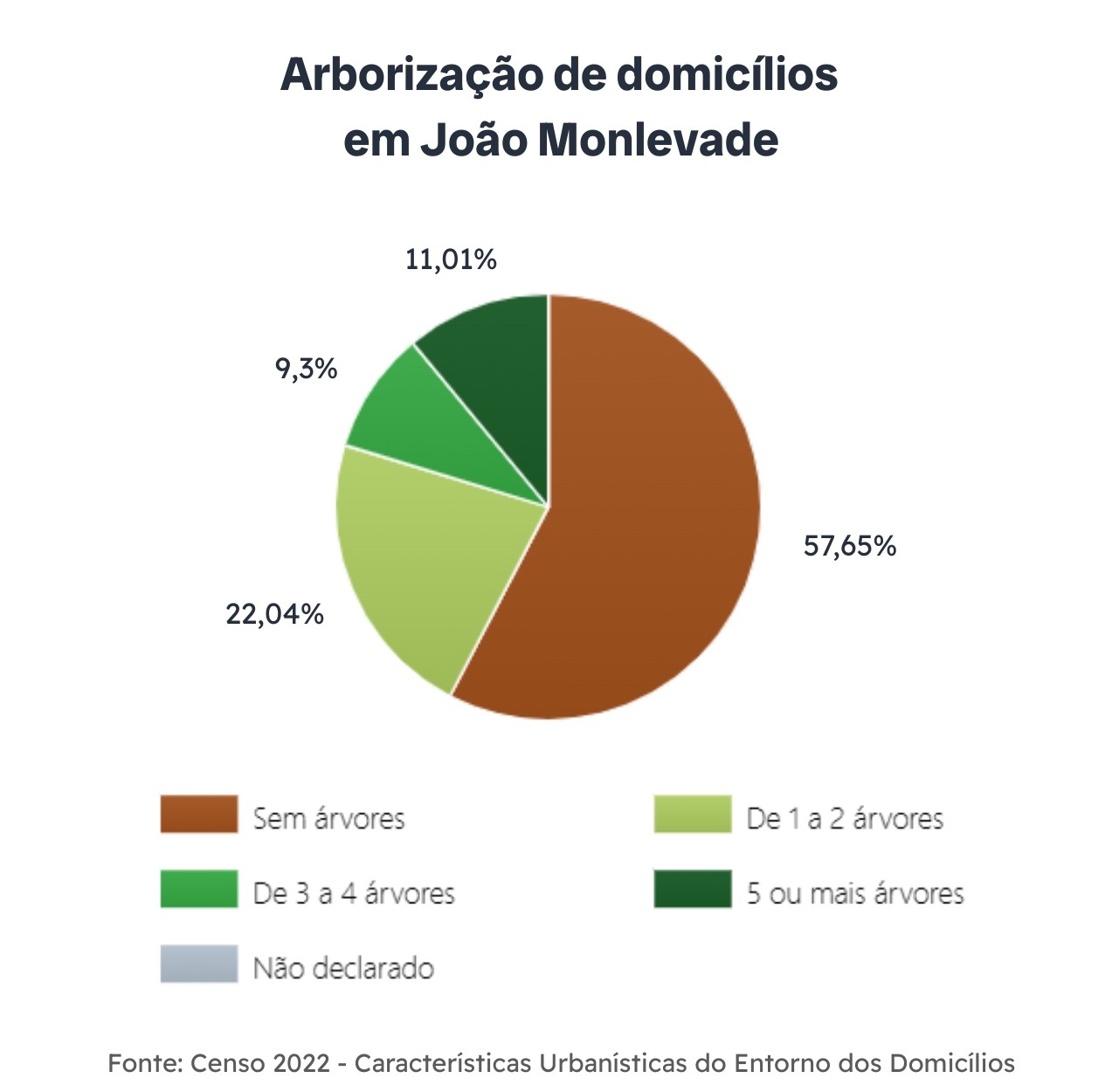 Atualmente, 57,65% dos domicílios estão em ruas sem árvores. Apenas 9,3% dos domicílios possuem de 3 a 4 árvores no entorno, e 11,01% possuem 5 ou mais.
